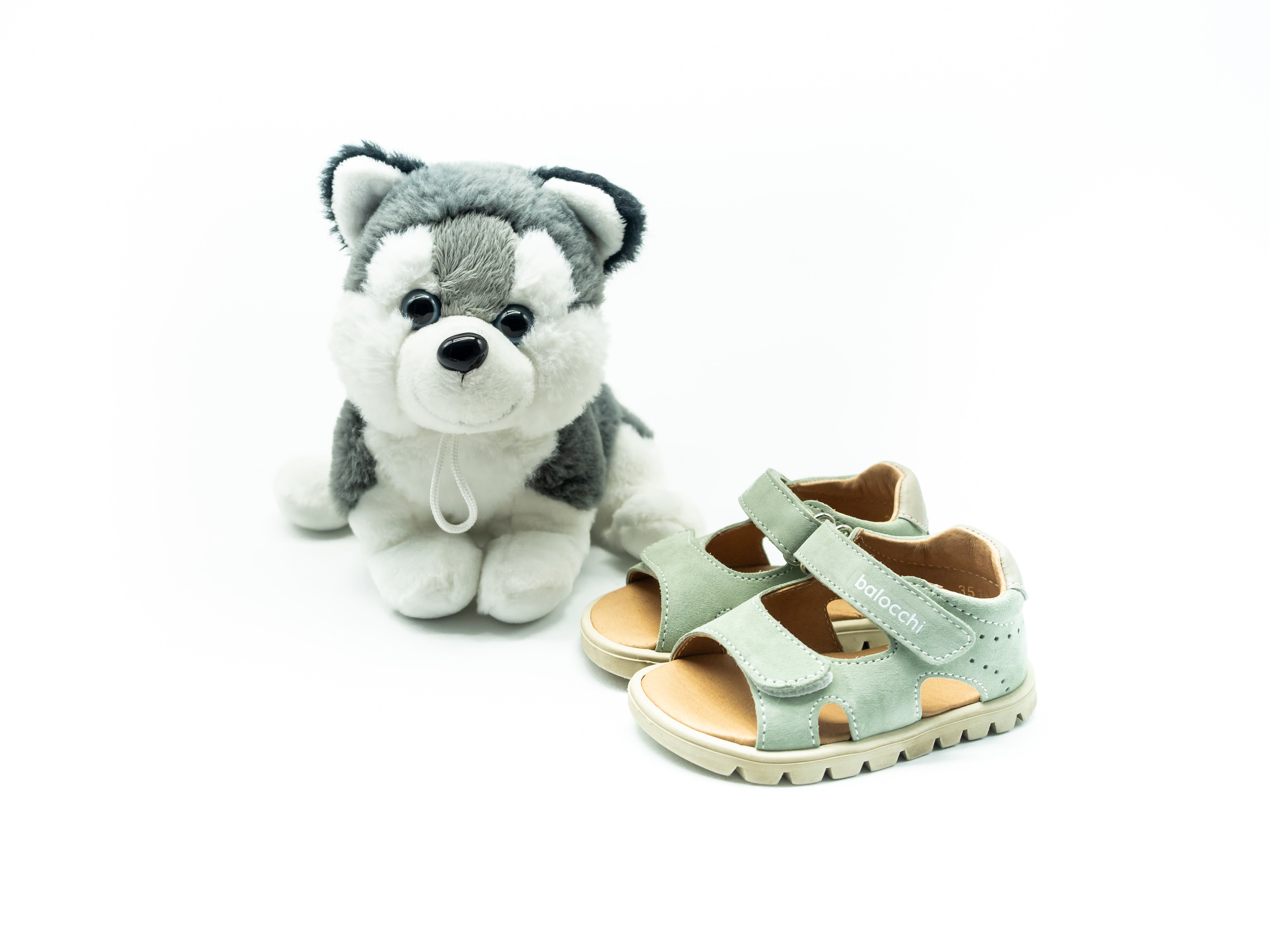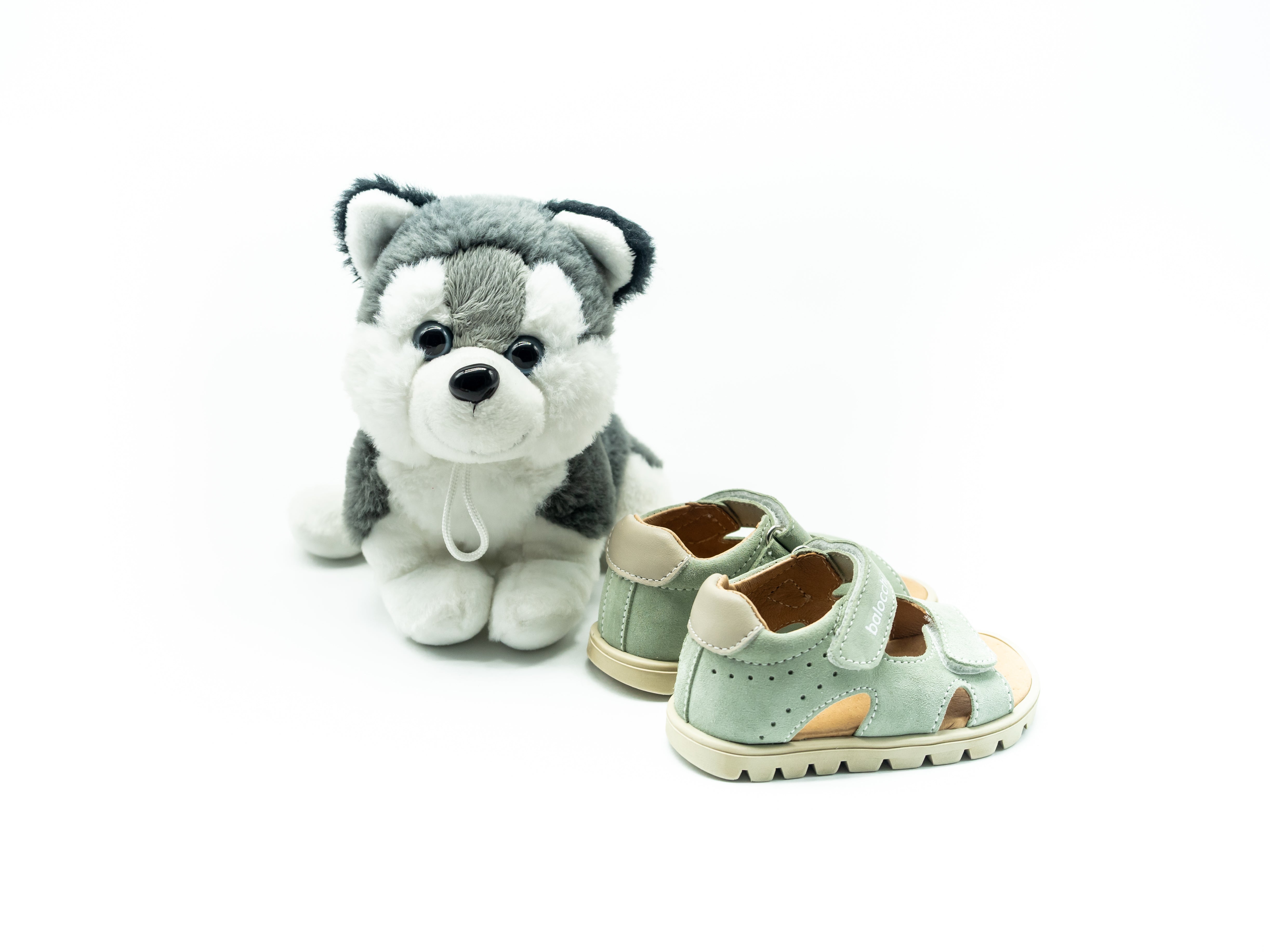Sandalo in pelle camoscio , chiusura con doppio velcro, plantare in vera pelle morbido, suola in gomma antiscivolo
