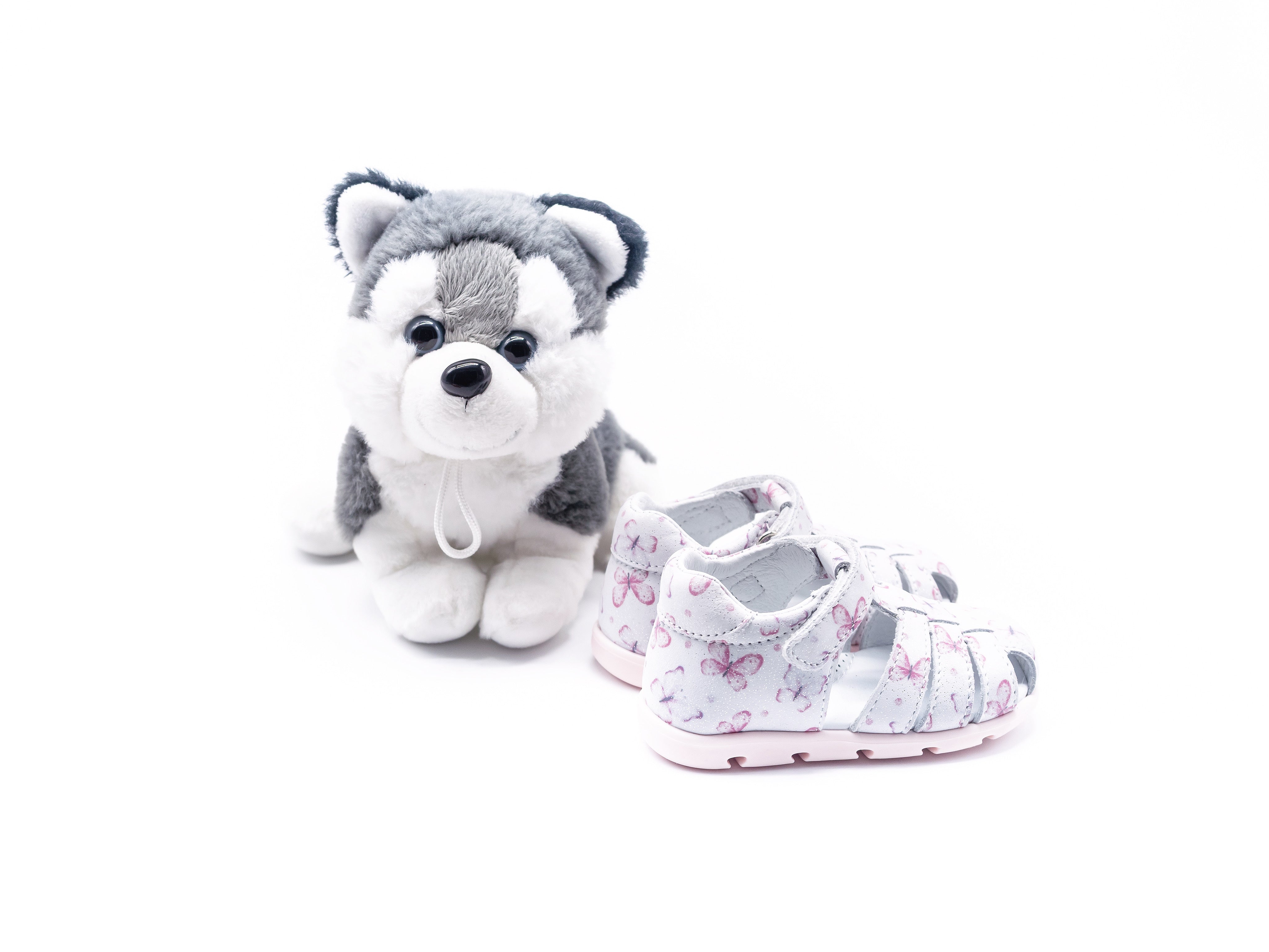 Sandalo semi chiuso in pelle , chiusura con velcro, plantare in vera pelle morbido, suola in gomma antiscivolo