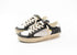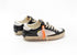 Sneaker realizzata con materiali di alta qualità Made in Italy, tomaia in pelle e cracklé nera, dettagli in suede verde militare,Talloncino in pelle bianca, Linguetta in tessuto camouflage con label logata in pelle,Patch in pelle nera sul retro,Lacci avorio in poliestere,Doppio laccio neri, Unico tag PVCarancio,Fodera in pelle e tessuto, Suola in ecopelle fasciata ivory, fondo verde oliva, alta 2.5 - 3.5 cm