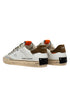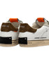 sneaker realizzata con materiali di alta qualità made in italy,tomaia in pelle bianca, dettagli in suede argento,talloncino in suede marrone,linguetta in pelle bianca con label logata in tessuto,patch in pelle nera sul retro,doppio laccio camouflage e bianco,fodera in pelle e tessuto,suola in ecopelle fasciata beige, alta 2.5 - 3 cm, fondo miele,effetto vintage,vestibilità regular