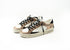 Sneaker realizzata con materiali di alta qualità Made in Italy, tomaia lamina bronzo dettagli in glitter bronzo ,talloncino in suede nero,linguetta in pelle bianco con label logata in pelle, Patch in pelle nera sul retro, Lacci neri in poliestere , Fodera in pelle e in tessuto Suola in ecopelle fasciata grigio chiaro, fondo miele scuro, alta 2.5 - 3 cm, Effetto vintage