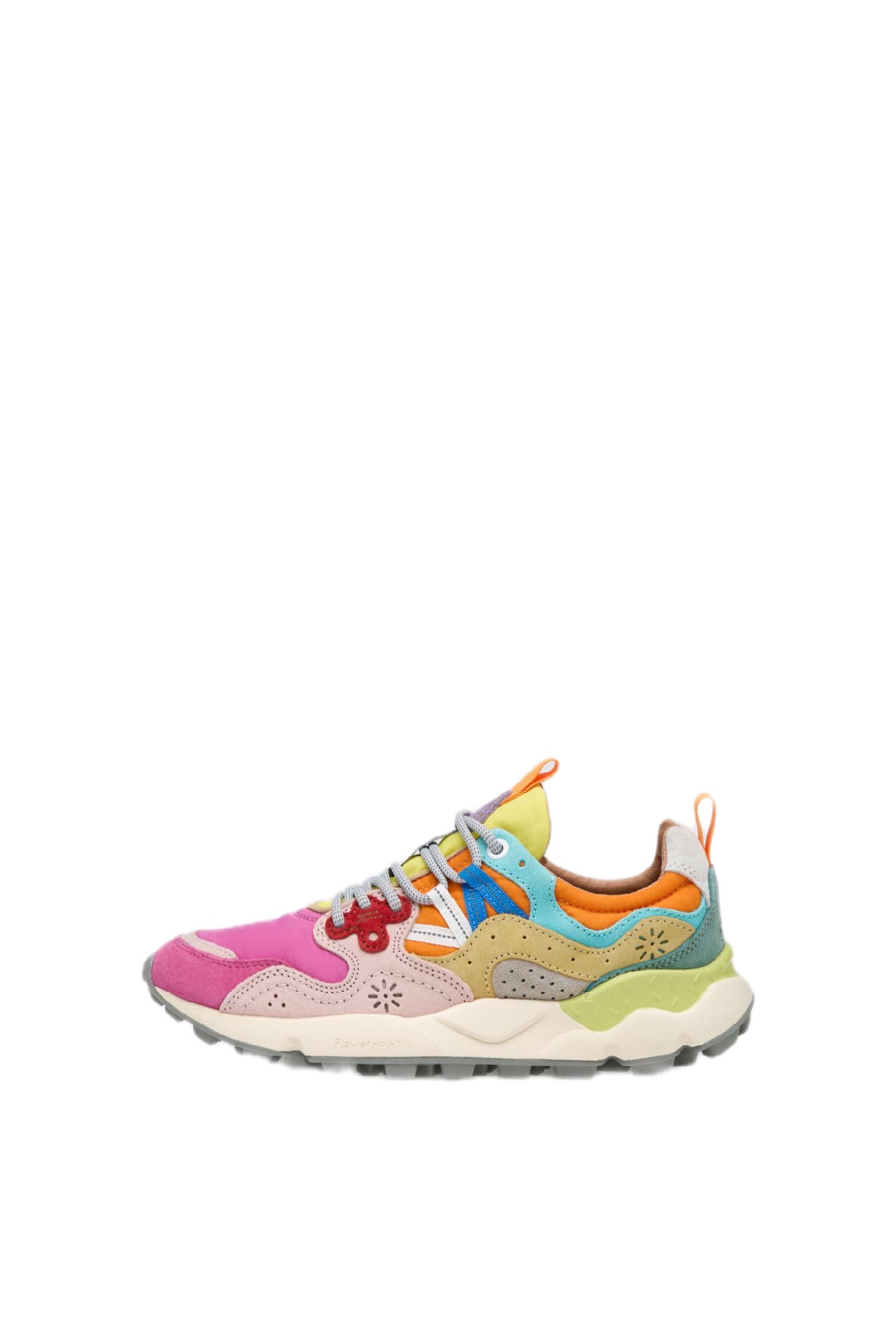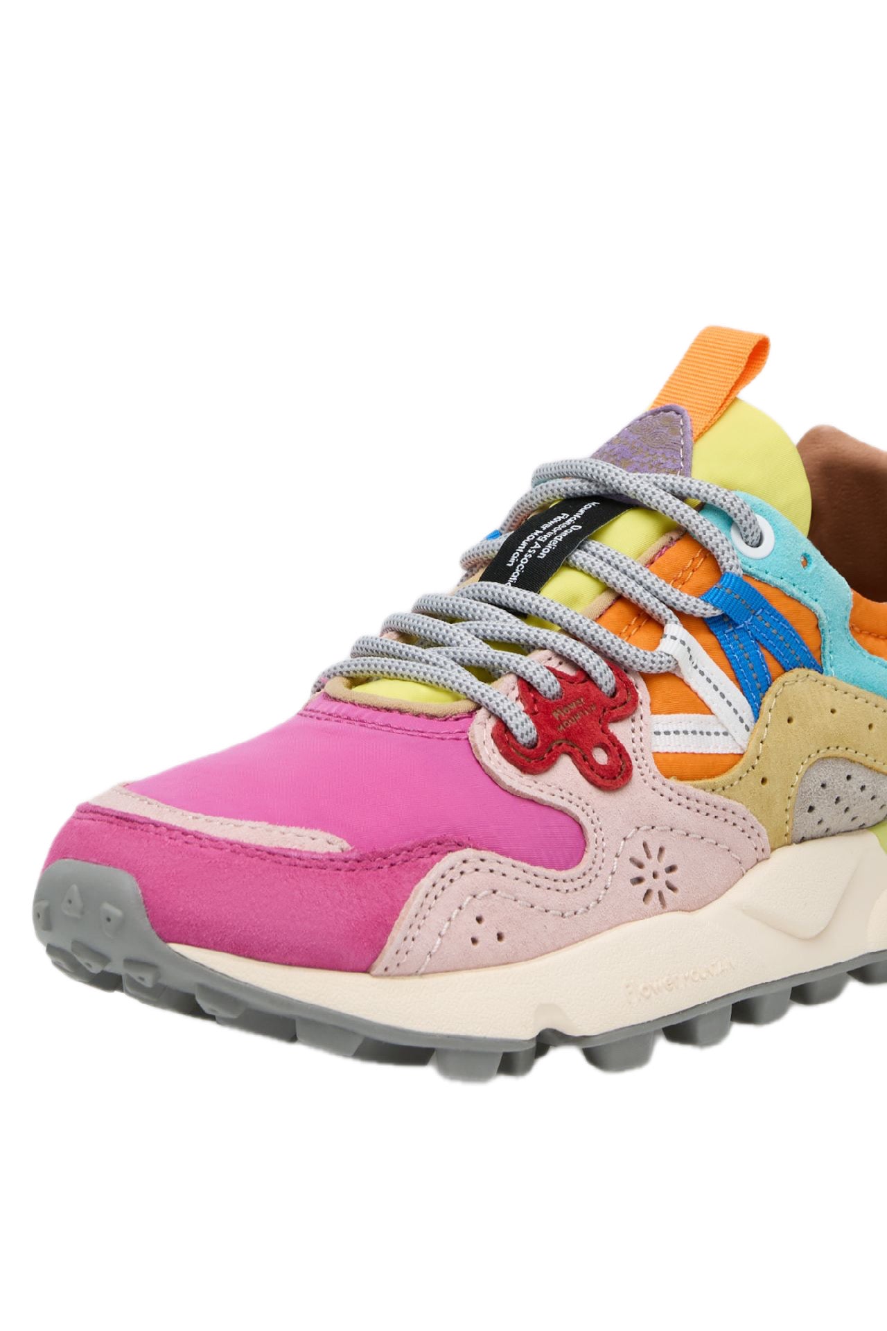 Le sneaker Yamano mixano dettagli active con un'estetica cool, perfetta anche in città. La tomaia in tessuto tecnico e pelle presenta dettagli in suede con la caratteristica costruzione overlapping, stringhe trekking e occhiello dalla sagomatura floreale. La suola è in gomma ultra leggera, con sagomature laterali e battistrada dentellato. La soletta interna in sughero naturale antibatterico assicura benessere al piede e comfort all day long