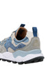 Le sneaker Yamano mixano dettagli active con un'estetica cool, perfetta anche in città. La tomaia in tessuto tecnico e pelle presenta dettagli in suede con la caratteristica costruzione overlapping, stringhe trekking e occhiello dalla sagomatura floreale. La suola è in gomma ultra leggera, con sagomature laterali e battistrada dentellato. La soletta interna in sughero naturale antibatterico assicura benessere al piede e comfort all day long.