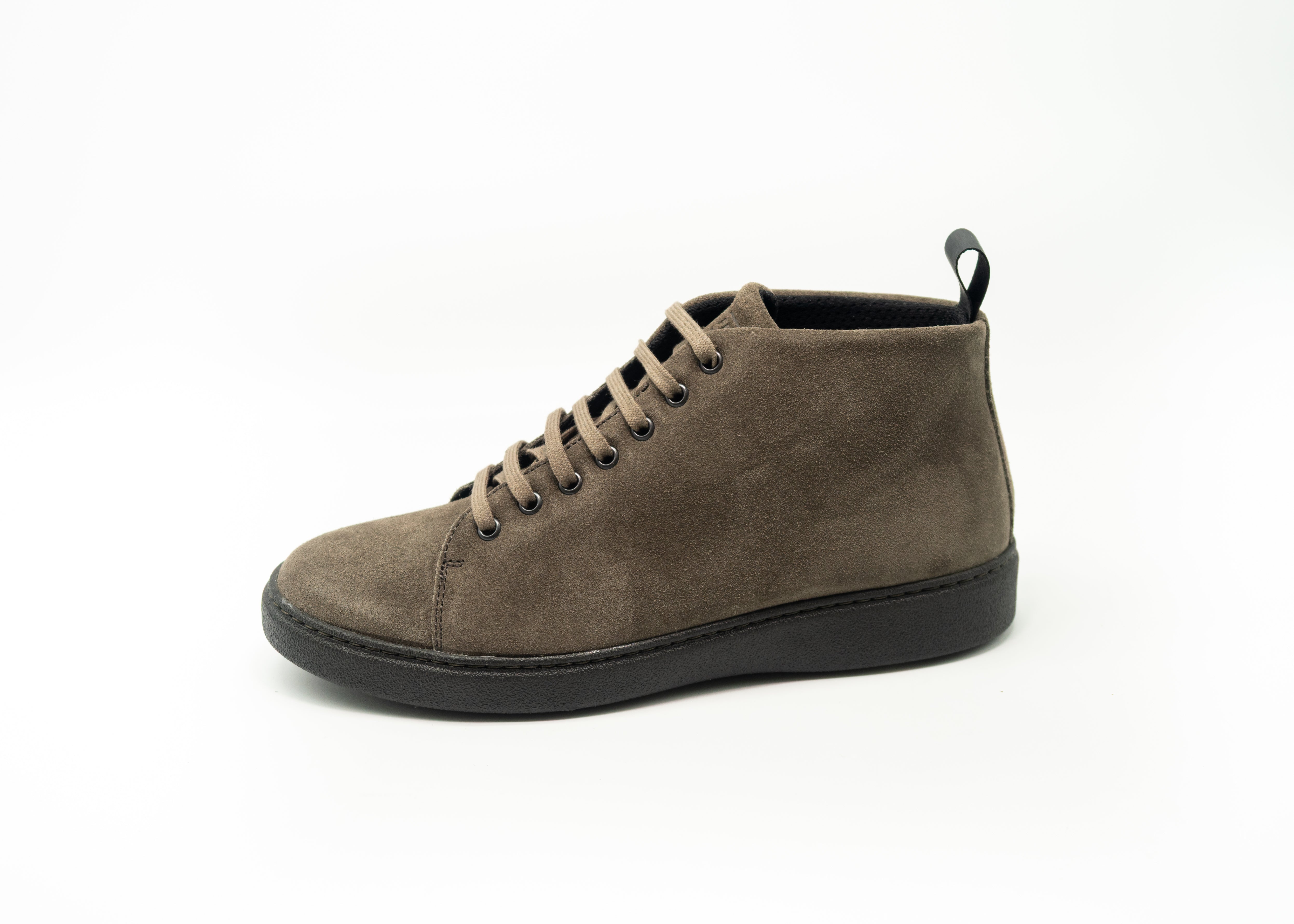 Polacchino alto in pelle scamosciata, fodera in tessuto traspirante AirTech, sottopiede co struttura ergonomica foderato in tessuto traspirante AirTech, suola in gomma, vestibilità regolare