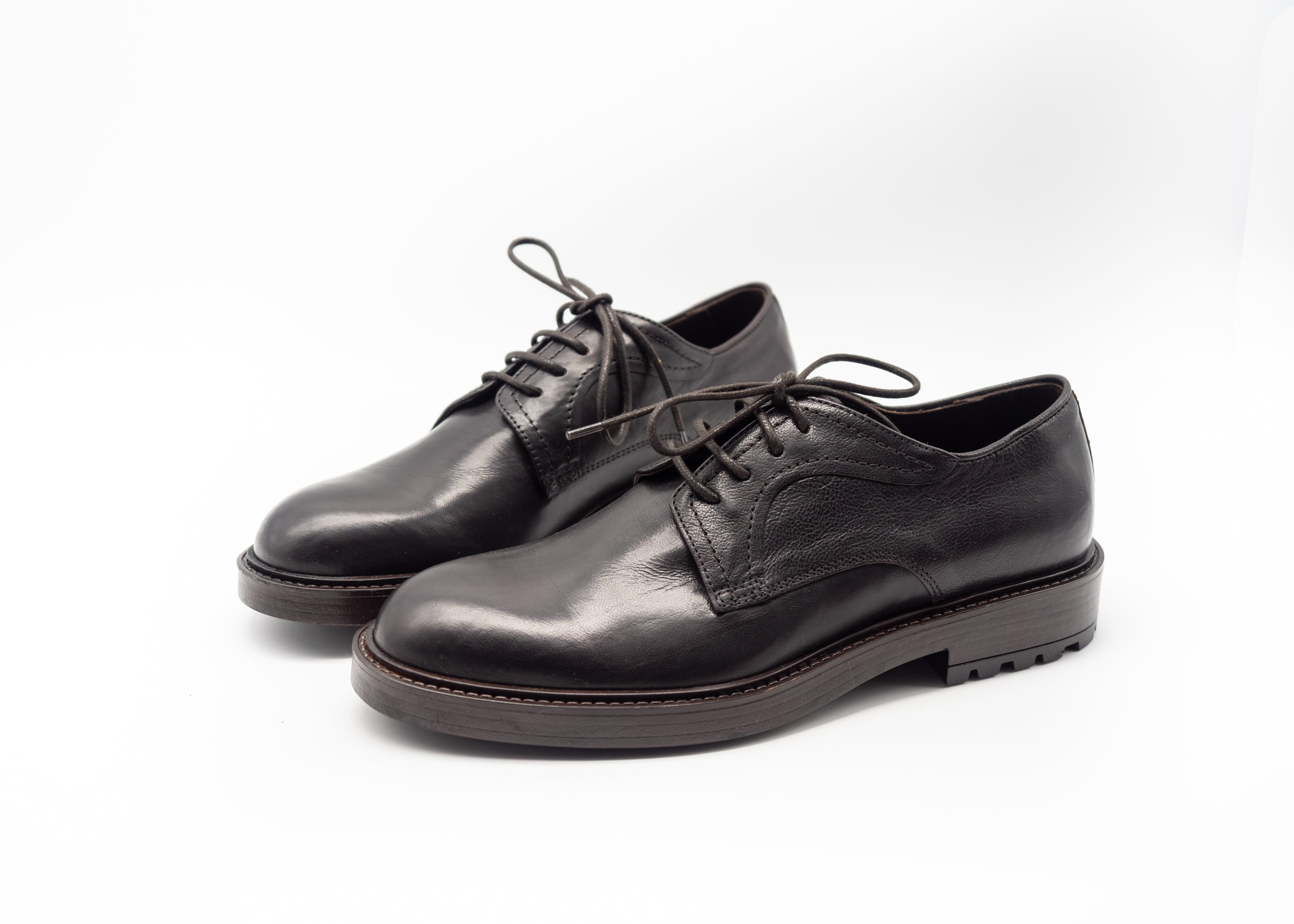 Stringata in pelle bufalo, fodera in pelle , plantare in pelle morbido, suola in gomma cucita