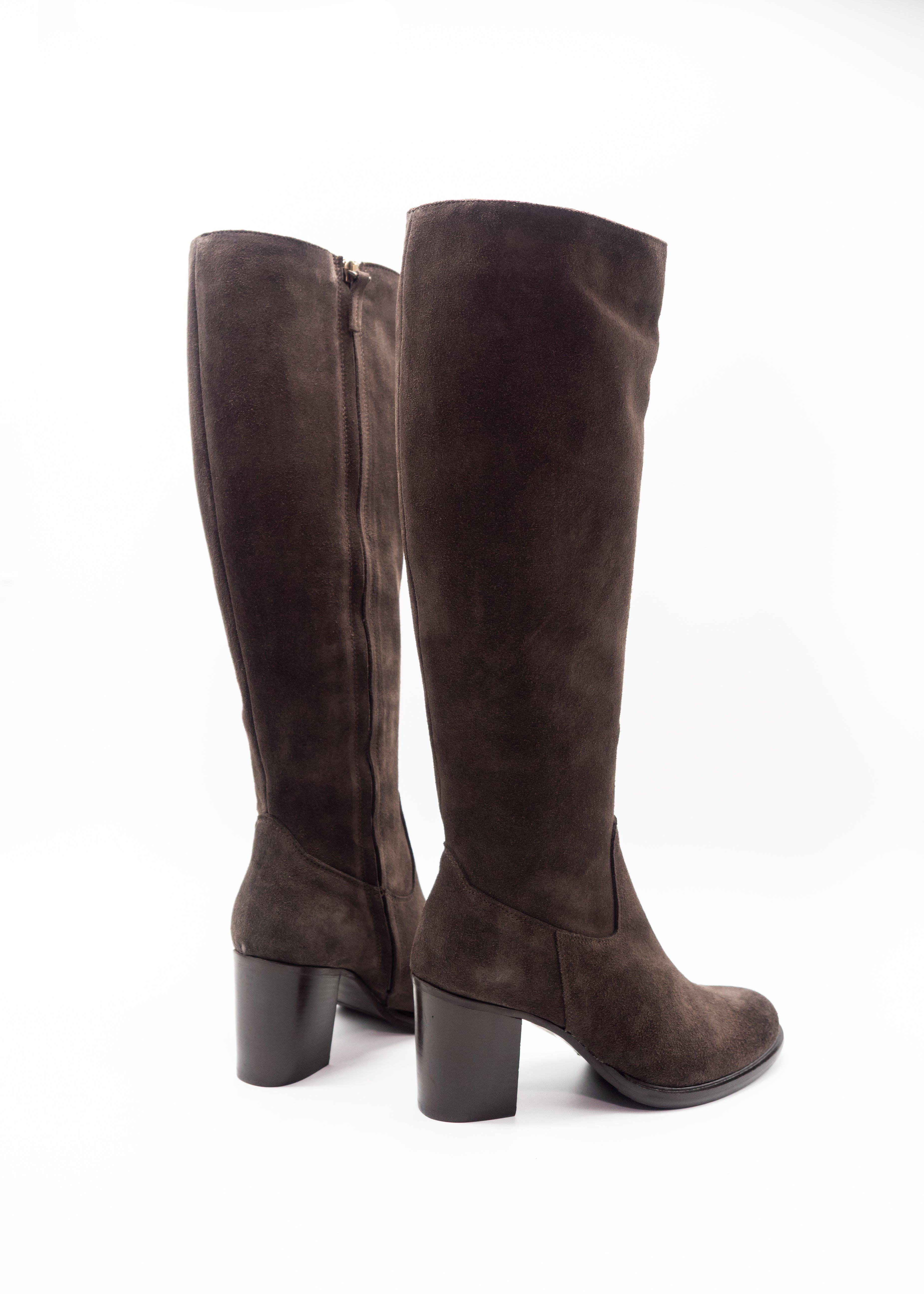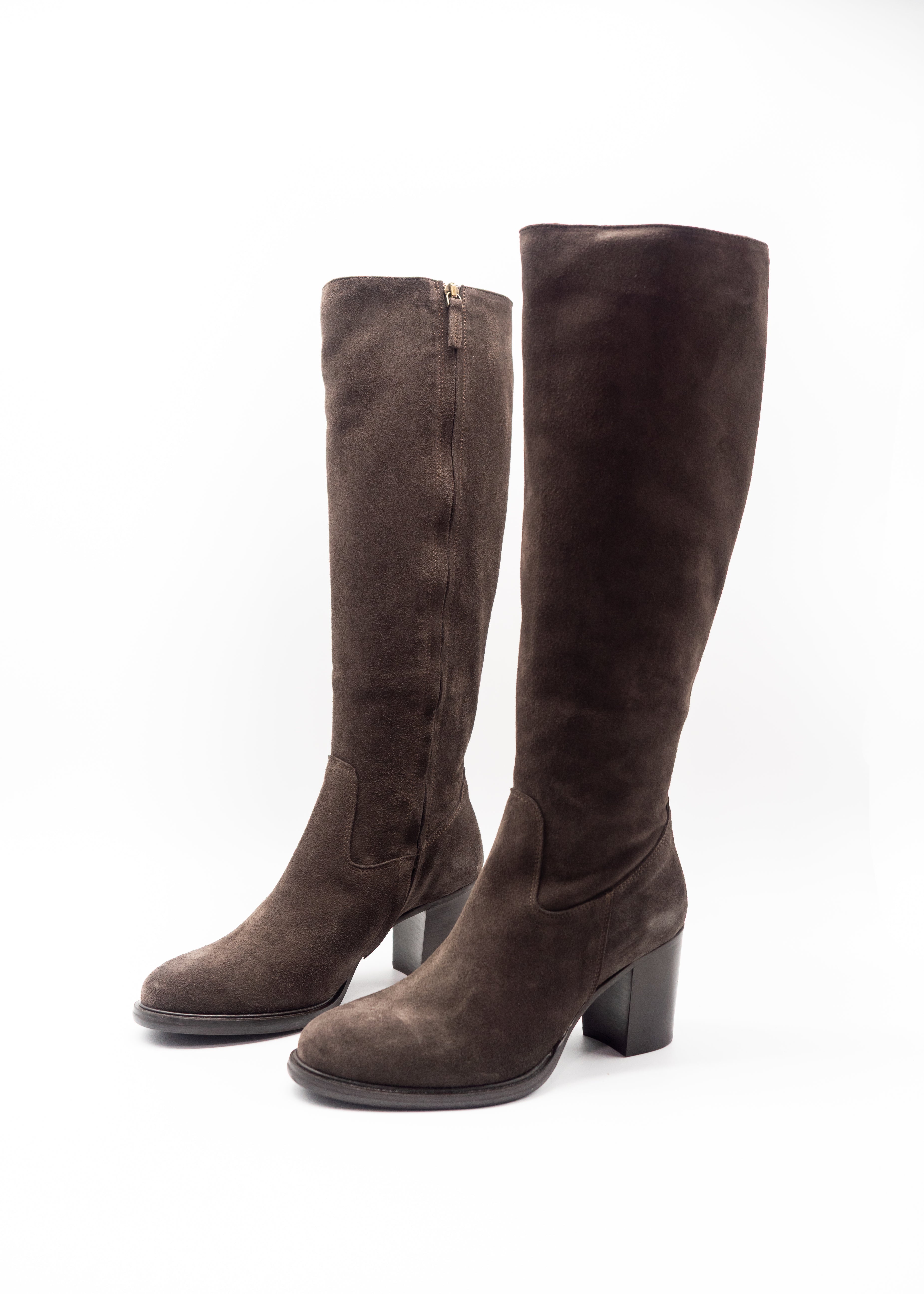 Stivale in pelle morbida camoscio ,fodera interna pelle , chiusura con cerniera nella parte interna del gambale , tacco 7cm platform 1cm , suola in gomma.