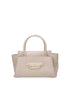 Handbag realizzata in pelle dollaro, resistente e morbida al tatto, è dotata di chiusura con zip. Sul fronte è presente una pratica tasca con chiusura magnetica, impreziosita da una placca metallica che riprende il colore della borsa, diventando un dettaglio distintivo che valorizza il design.
