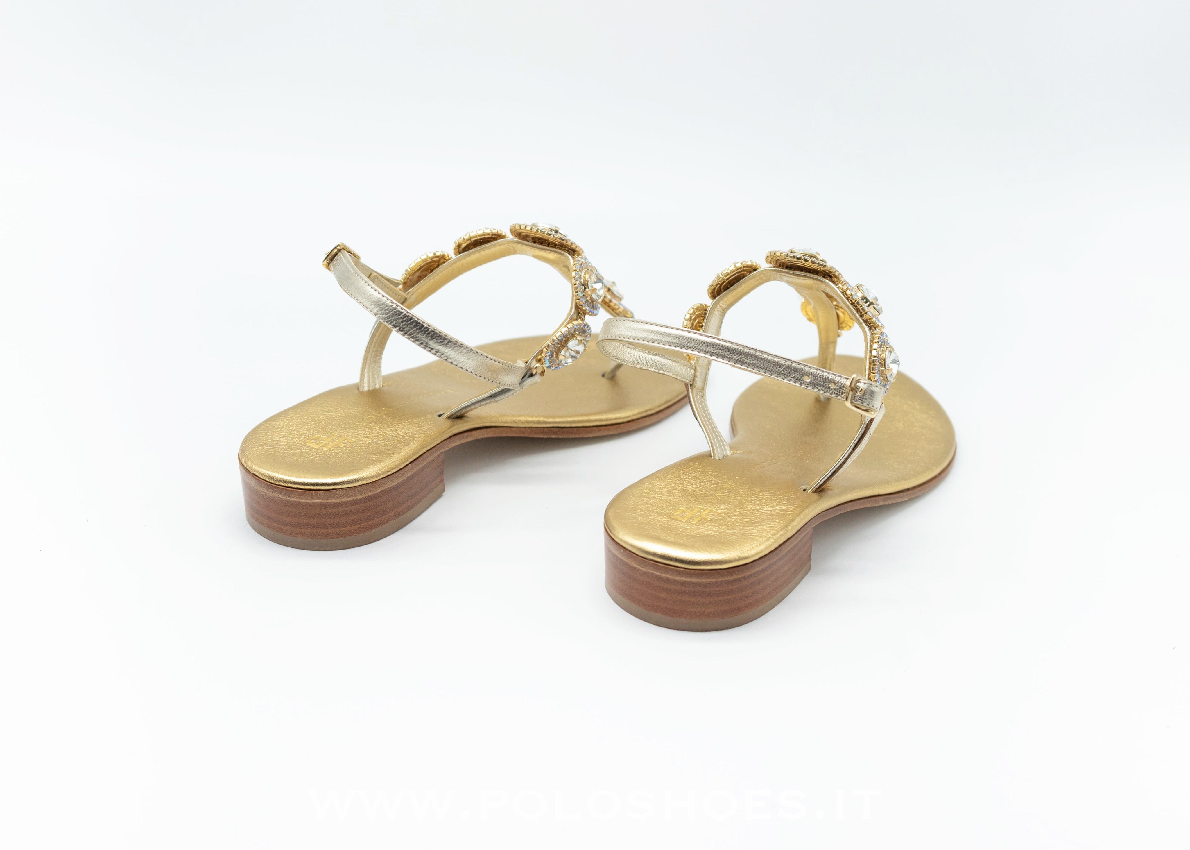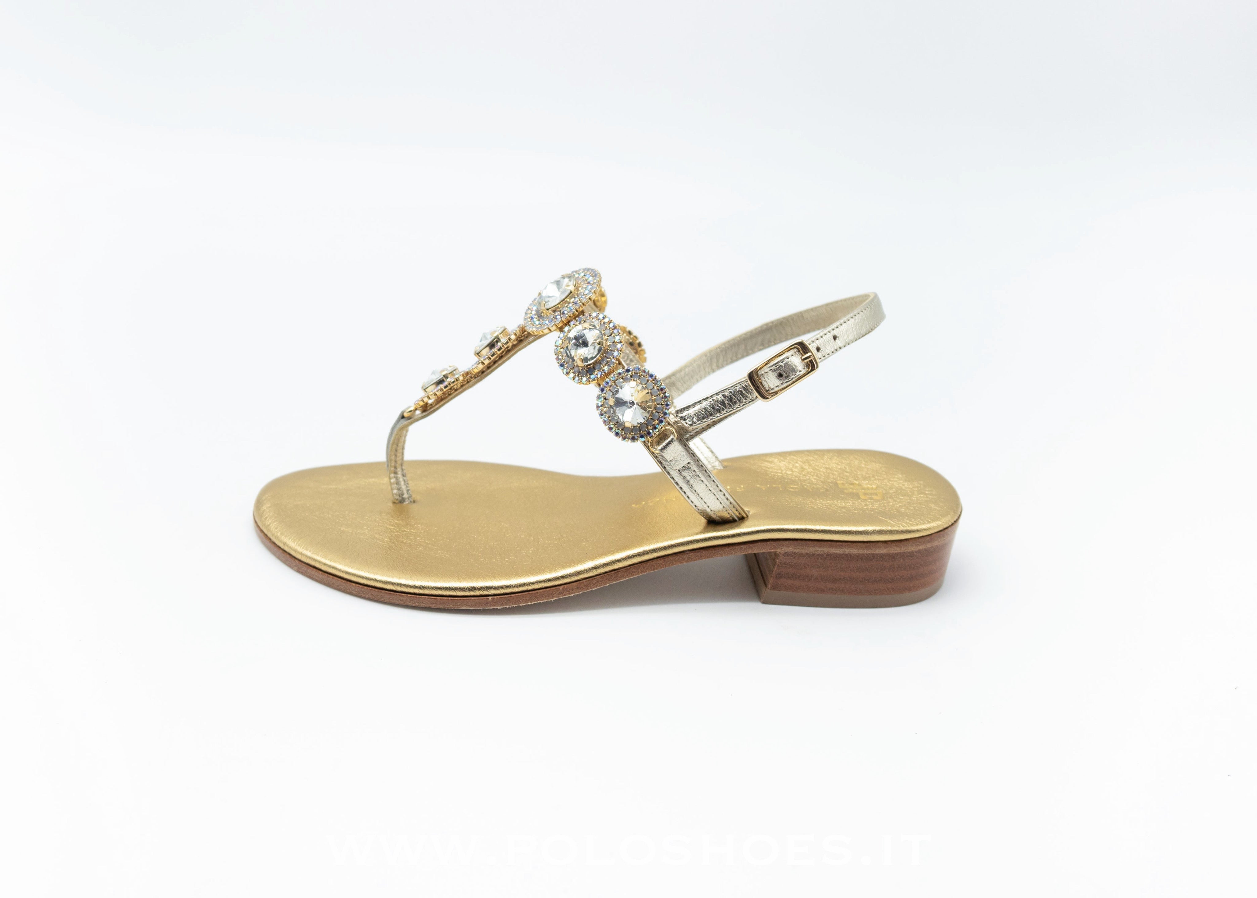 Sandalo infradito gioiello con pietre White gold , plantare in pelle morbida , chiusura con cinturino , suola in cuoio , tacco 25