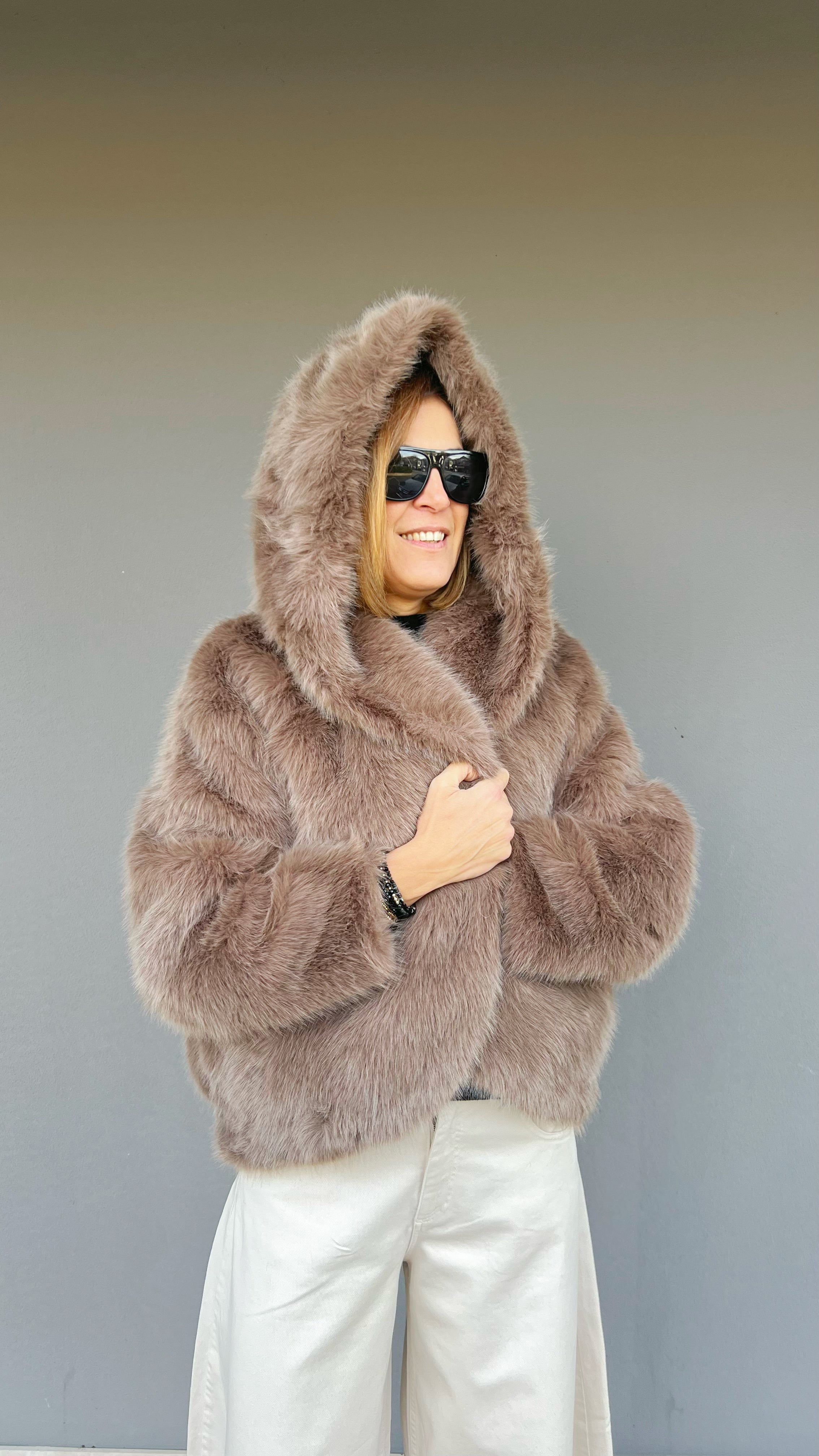 Ecopelliccia con cappuccio , chiusura con un gancio a clip