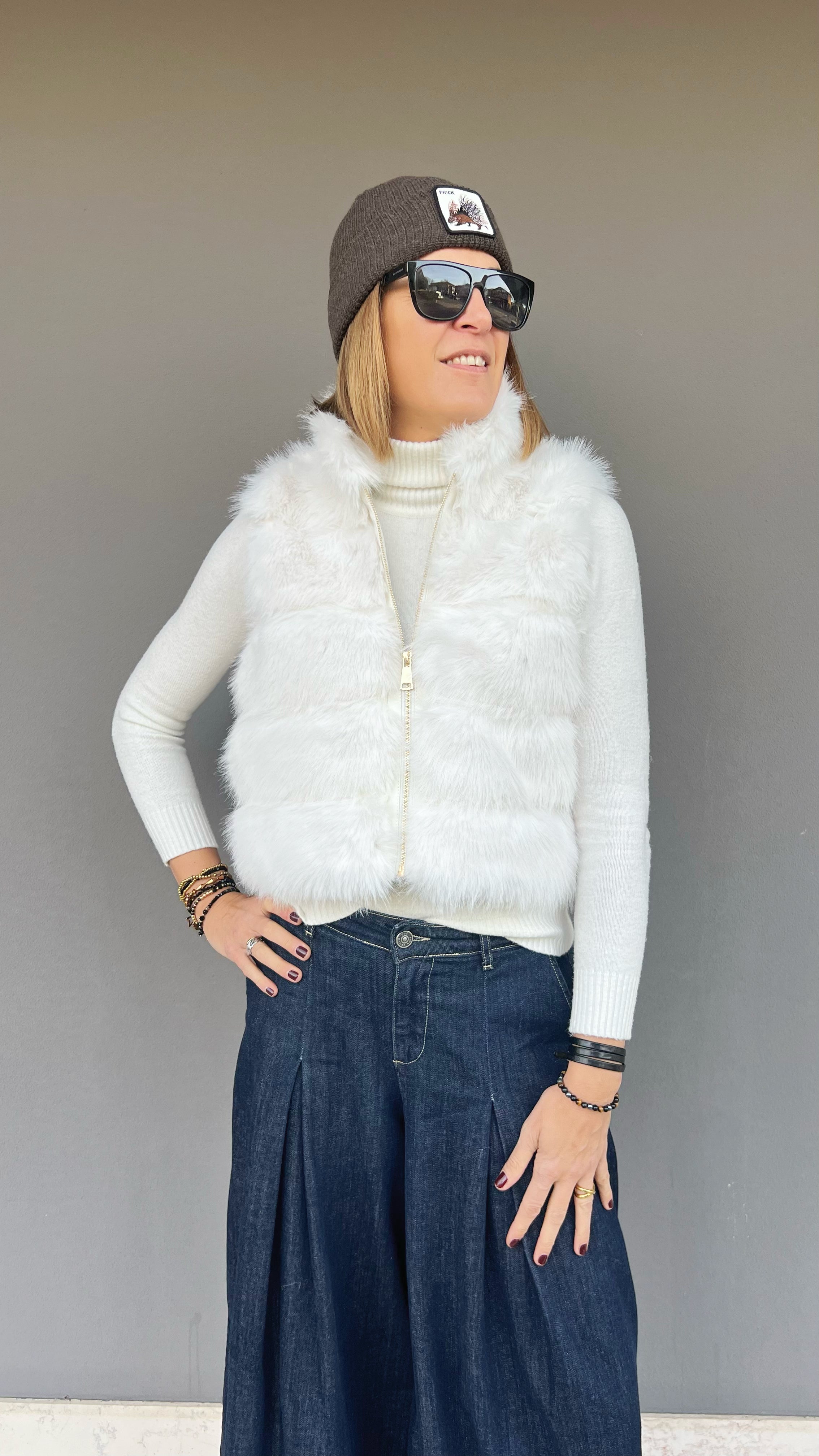 Ecopelliccia smanicata , chiusura con zip