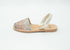 sandalo basso in glitter multicolor . sottopiede in cuoio . suola in gomma