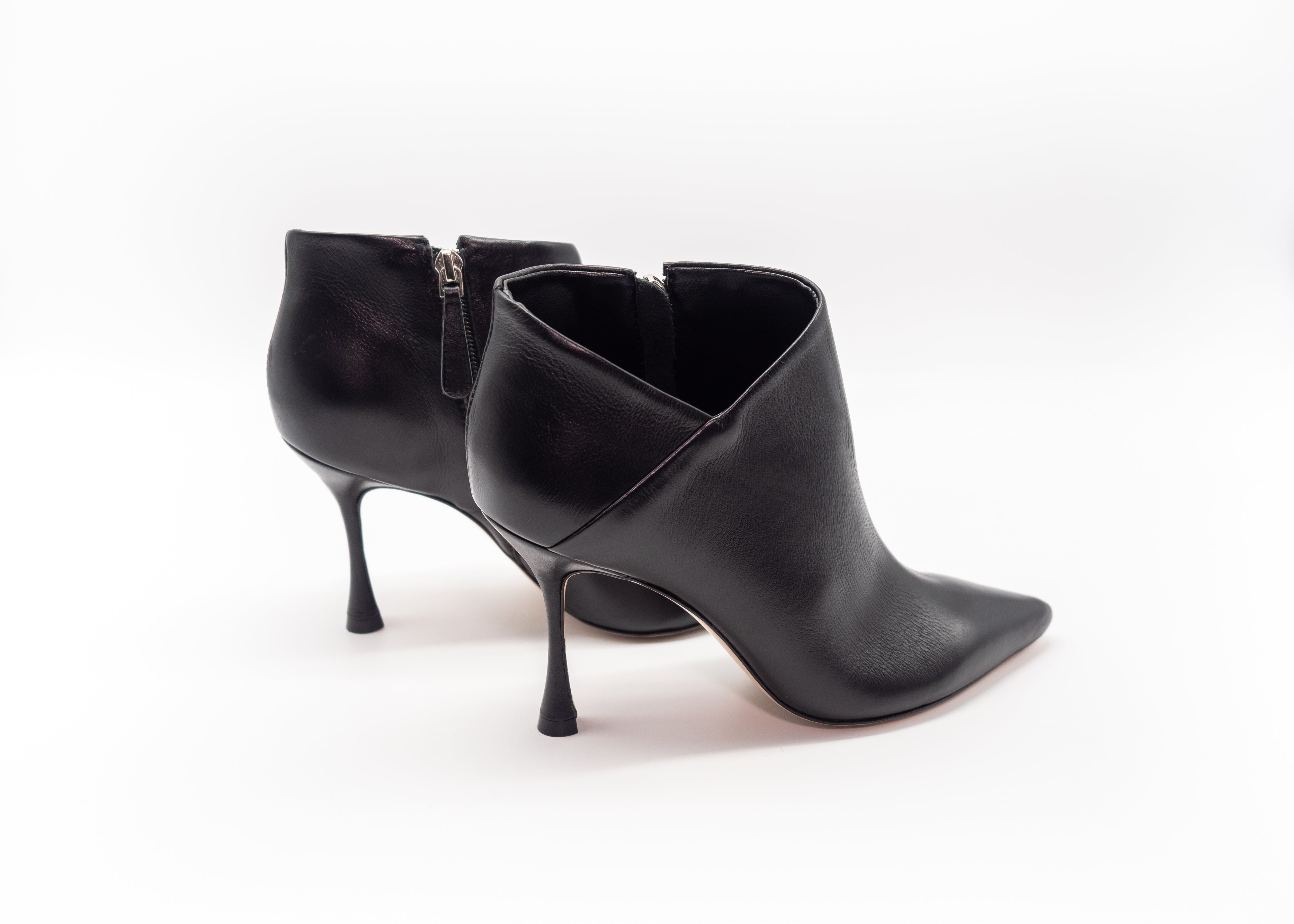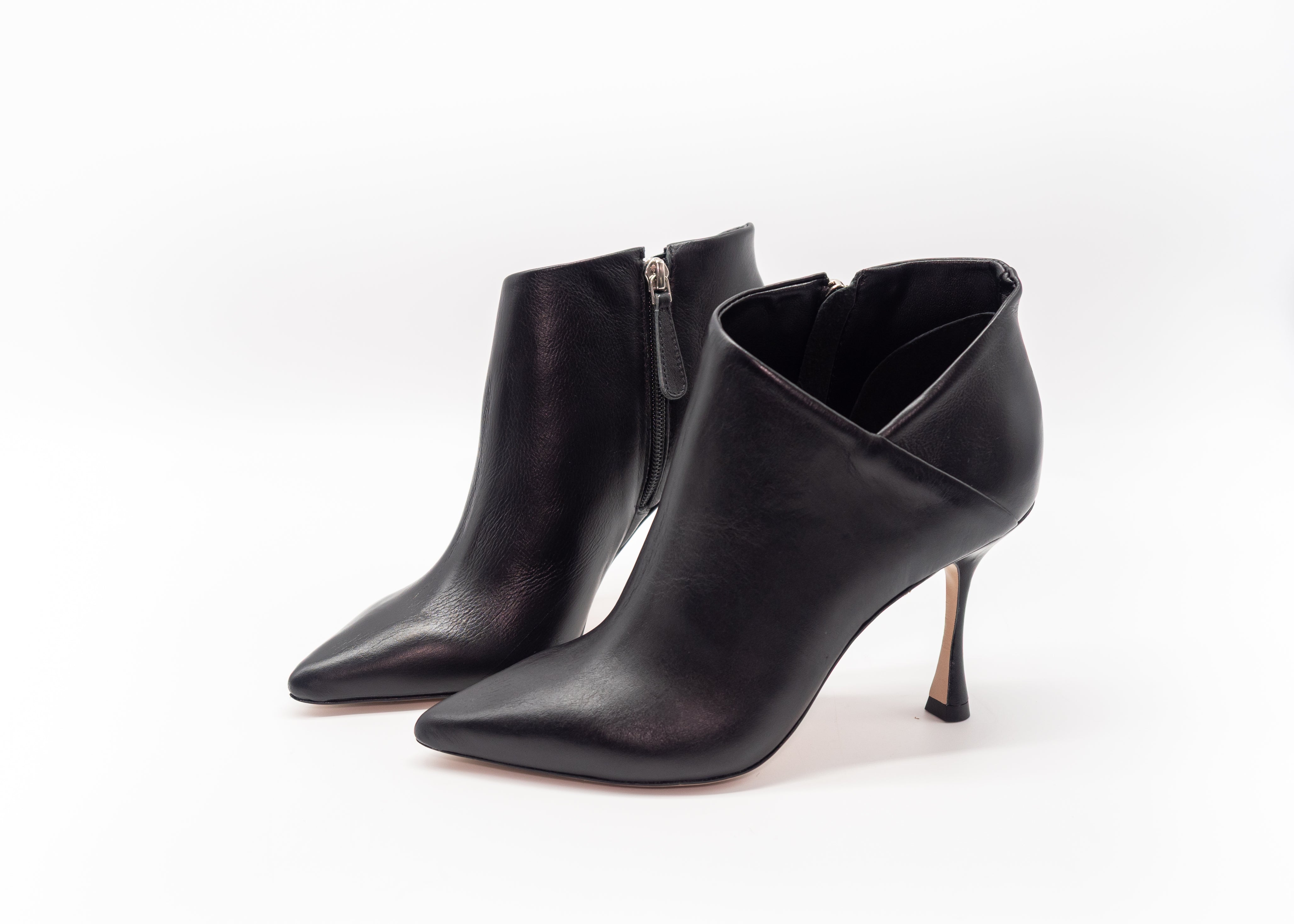 Tronchetto in pelle , chiusura con cerniera nella parte interna , tacco rivestito 9cm, suola in vero cuoio